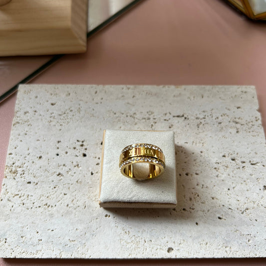 REGINA - Roman Numeral Ring with Zirconia Stones
